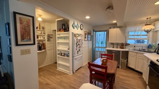 Kitchen has stove, refrigerator, dishwasher and microwave
