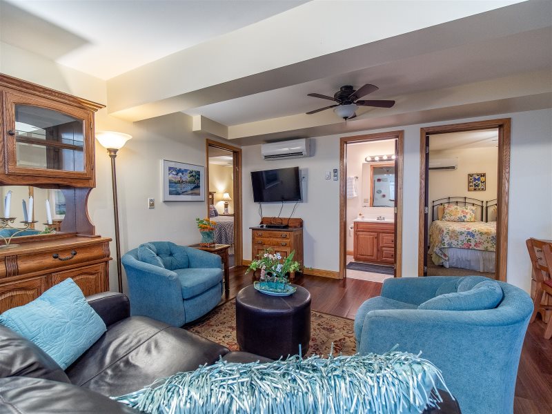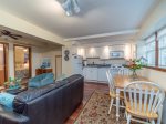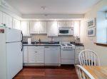 Kitchen has stove, refrigerator, dishwasher and microwave
