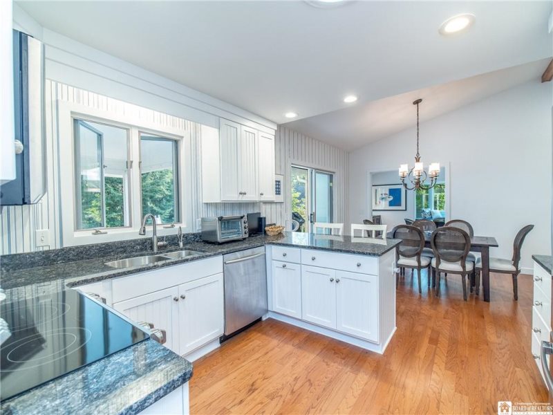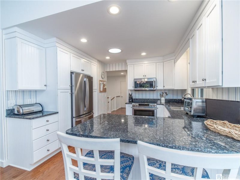 Kitchen has stove, refrigerator, dishwasher and microwave